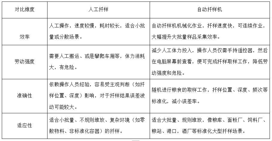 進行原糧的扦樣工作,一張圖告訴你人工扦樣和自動扦樣機扦樣有啥區(qū)別?
